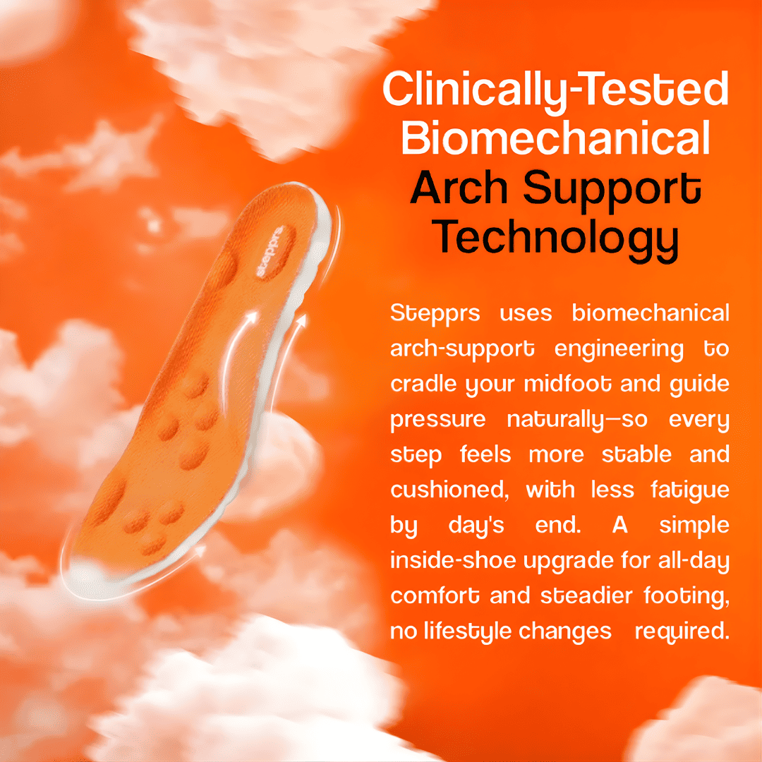 The arch of your foot is a natural shock absorber — but only when it's properly supported. Without it, every step collapses your arch slightly, sending compensatory stress up through your ankle, knee, hip, and spine.