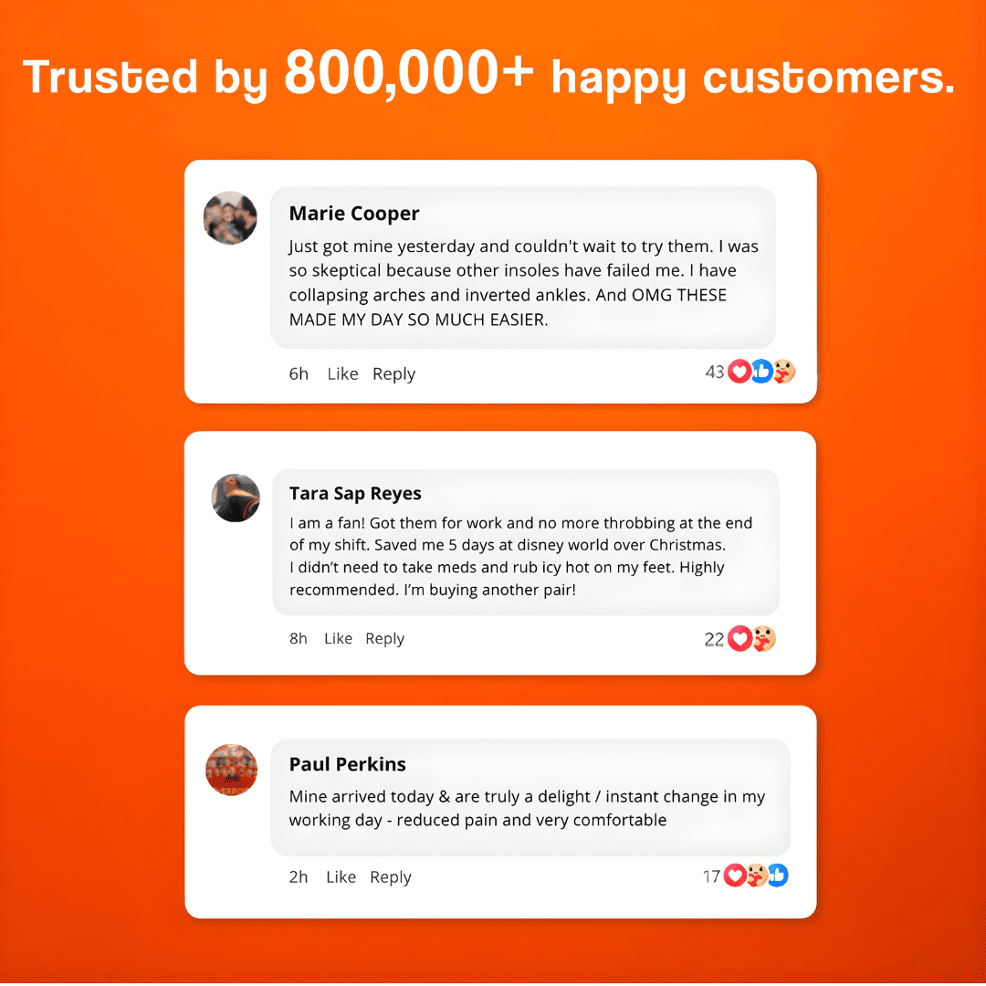 Started walking 10,000 steps a day as part of my weight loss journey. By week 2 my feet were so sore I nearly quit. Someone in my Facebook group mentioned these. Ordered the 2-pair. Haven't missed a single day since. Down 26 lbs. My feet are the least of my worries now.